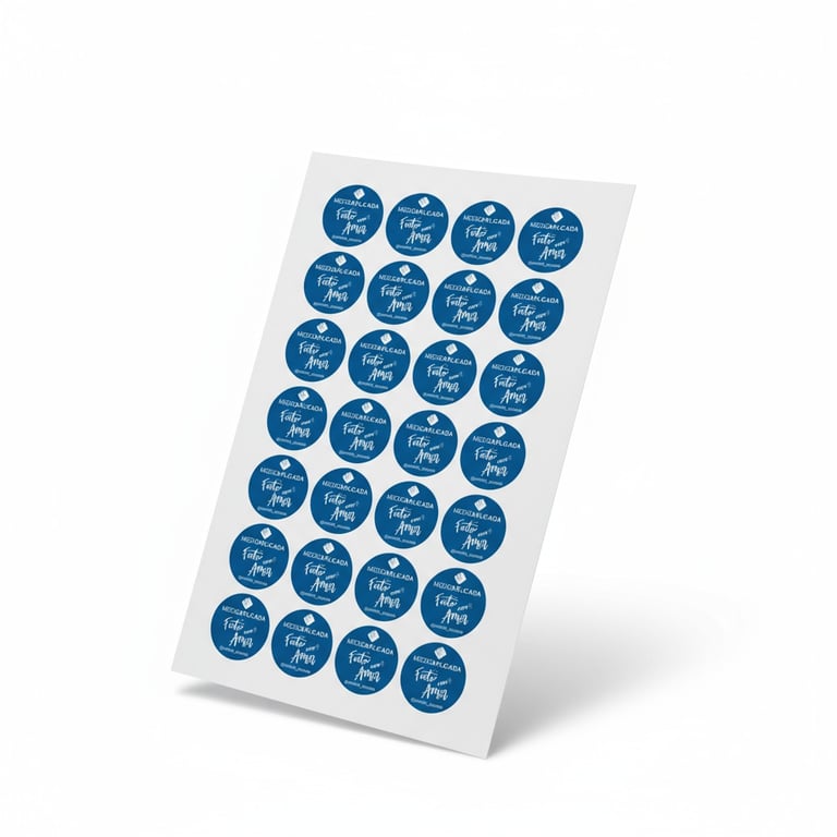 As cartelas de adesivos são produzidas por unidade. Cada cartela vem com uma quantidade de adesivos conforme o seu tamanho. Exemplo: adesivos com 3x3cm vêm com 54 unidades.