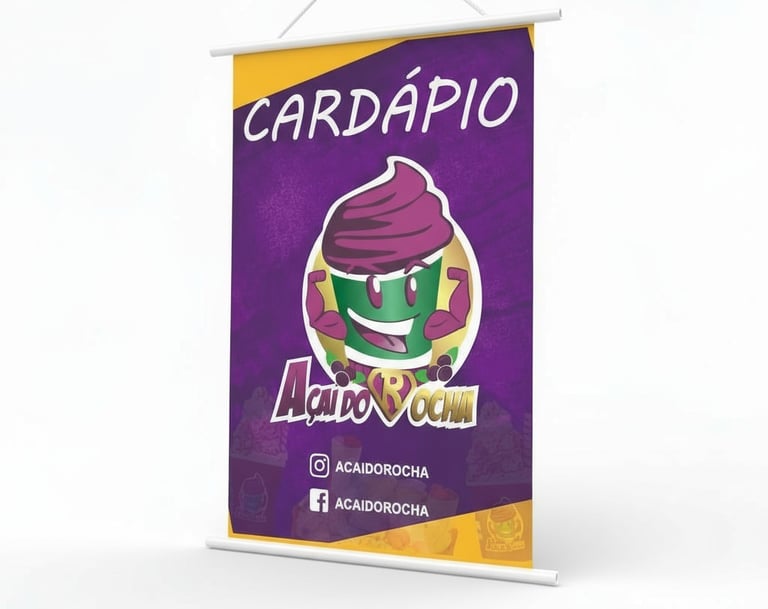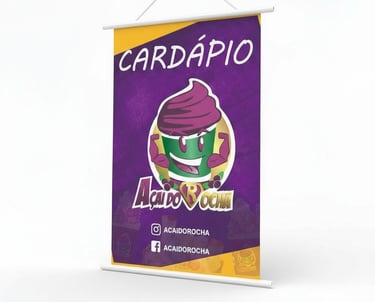 São banners confeccionados em lona com acabamento em bastão na parte superior e inferior, com terminais em plásticos.